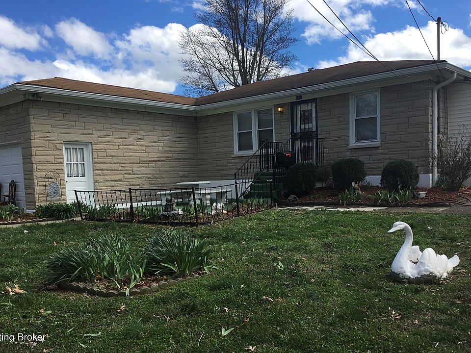 This stone ranch would make some lucky buyer a great home! A few updates could make this a cozy place to live and make memories. Nice patio area gives entry to great room with dining area. Beautiful hardwood flooring. Additional family room in rear of home could be used for dining room, bedroom, office, etc. Two laundry hookups for your convenience. One on main floor and one in basement. Partially finished basement floorplan consists of enough space for extra bedrooms, full bath with shower, storage and great workshop area. Fully fenced flat yard. 1 car attached garage. Priced for a quick sale! Schedule your showing today!