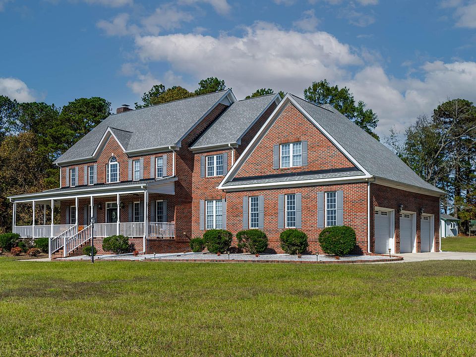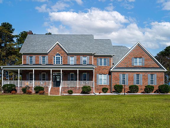 4 BR | 3 BA | 3,805 sq ft | 6+ Acres — All-Brick Colonial Estate — Wake Forest, NC. Set on 6.03 acres of prime Wake County land, this meticulously maintained all-brick colonial combines immediate move-in comfort with strong potential for future value. A wraparound porch, private gated entry, and expansive road frontage frame a home built with quality materials and thoughtful design. Inside, rich hardwood floors lead from an elegant formal dining room to a chef-inspired kitchen with central island, opening to a sunlit family room with a versatile gas or wood-burning fireplace. Enjoy panoramic pasture views from the living room and experience true convenience with a main-level ADA-accessible bedroom and bath—perfect for independent living, multi-generational comfort, or welcoming guests with ease. Upstairs features a spacious, primary suite, two additional bedrooms with full bath, an office, a laundry room with a floor drain, and a flexible bonus room perfect for media, fitness or gaming. A walk-up attic and full basement provide ample opportunities to add finished square footage, while the three-car garage with soaring ceilings appeals to car enthusiasts and hobbyists. This home is thoughtfully designed for durability and low maintenance, featuring dual HVAC systems, whole-house water filtration, and tilt/removable windows. The land is equally impressive, offering horse-friendly pastures, a four-stall barn with two-car parking, shed, metal carport, mature grapevines, portable chicken coop, and six acres of open terrain ready for gardens, a pool, or future structures. All of this comes with unbeatable convenience, minutes from top schools, shopping, dining, and direct routes to Raleigh, Knightdale, Rolesville, and Wake Forest. Don't miss this rare opportunity with turnkey family comfort and serious investment potential—6404 Pulley Town Road truly has it all! Call Terrie at 919-218-0321 to schedule your private tour today!