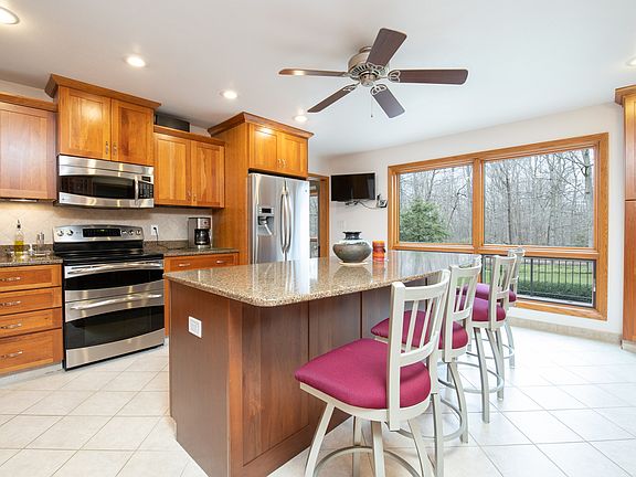 Hot Property! Custom contemporary one owner and one of a kind. Vaulted ceilings and open spaces define this unique home featuring clerestory windows, hardwoods and more all meticulously maintained. Convenient location but off the beaten path. Custom designed kitchen and baths. Cabinets of natural cherry by Shiloh. Cambria natural quartz countertops. Sunroom off of family room, large mud room, partially exposed LL rec room. Beautifullu wooded and professionally landscaped yard. Brazilian Ipe deck, patio. 2x6 construction plus HSA warranty