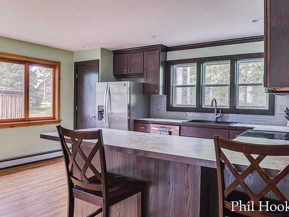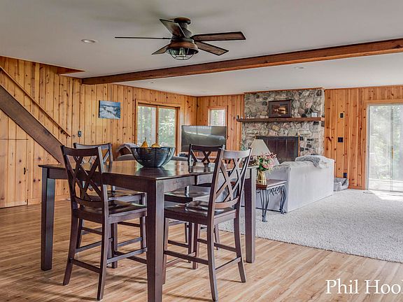 Updated 2 bed 2 bath Cape Cod with cedar lap siding and stone exterior on 3.8 private acres and deeded access to the Flat River. Fantastic kitchen update with new cabinets, counters, LED lighting, tile backsplash, sink, faucet and new stainless steel appliances. Home has brand new boiler for hot water heat, wide pine tongue and groove walls for both floors and the ceiling upstairs. Fishing guides say the warm water Flat River has great fly fishing for small mouth bass. Unpaved road appears tobe in the pavement process. Washer and Dryer are not included with the the sale and go with the seller. Natural gas and Charter Cable attached and used.