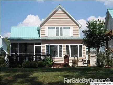 JUST REDUCED!!! Private waterfront community consisting of only 12 homes. Custom EVERYTHING - Vinyl siding w/ tin roof; screened in back poarch, hardwood floors, crown molding/trim, HUGE kitchen 21x19 w/ roll-out shelving, 2 laundry rooms, 2 master suites (1 upstairs 19x15, 1 downstairs 16x14 w/ Tiffany ceiling fan), wood blinds throughout, 2 pantries, laundry room w/ 1/2 bath and 2-car attached garage. Day pier, pool 14x10 screened in porch; place to park RV or Boat. 40 minutes to Huntsville; 25 minutes to Florence. Great home for entertaining! Enjoy beautiful sunrises and sunsets from your backyard overlooking the Tennessee River. Ammenities are unlimited! Priced at under $170 per square foot. NOTE: This house is NOT for rent.Additional property info: http://www.forsalebyowner.com/listing/3-bed-Single-Family-home-for-sale-by-owner-6404-Turtle-Bay-Way-35611/23904949?provider_id=28079