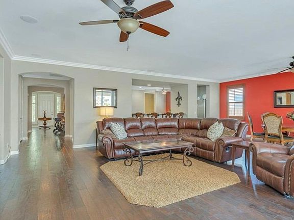Welcome to Four Seasons, an adult gated community designed for those aged 55+ and older, where luxury meets comfort. This upgraded home features a well-designed split-wing floor plan, guiding you through a beautiful entry into a spacious great room with a cozy fireplace. The dining area seamlessly connects to a large living room, perfect for entertaining, and the kitchen is equipped with a butler's pantry, stainless steel appliances, granite counters, and a charming kitchen nook. Pride of ownership is evident in the beautiful wood-like flooring and painted interiors. The living room opens to a low-maintenance yard with a covered patio, outdoor bar, and a soothing fountain. The primary bedroom offers a spacious retreat with an elegant bathroom and a generous walk-in closet. Two additional bedrooms, a side yard for your golf cart, and access to the community lodge with amenities like a swimming pool, tennis courts, theater room, gym, and much more.