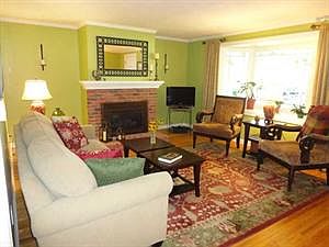 Stop looking this is the one for you! Much love went in to this updated home. Hardwood flooring through much of the home. Great room sizes too. Kit has ceramic tile back splash, stove stays (frig negotiable) BI Microwave, LR has gas brick fireplace with cove molding around ceiling and a bay window, Master is 11x18 but lives like 17x18 with the dressing & sitting area. Huge split bath with separate shower, C/T flooring and a skylight over the tub. Newer Roof was a complete tear off, Furnace 98 HWT 97. Newer windows. Finished bonus room in the basement has a closet for even more storage!