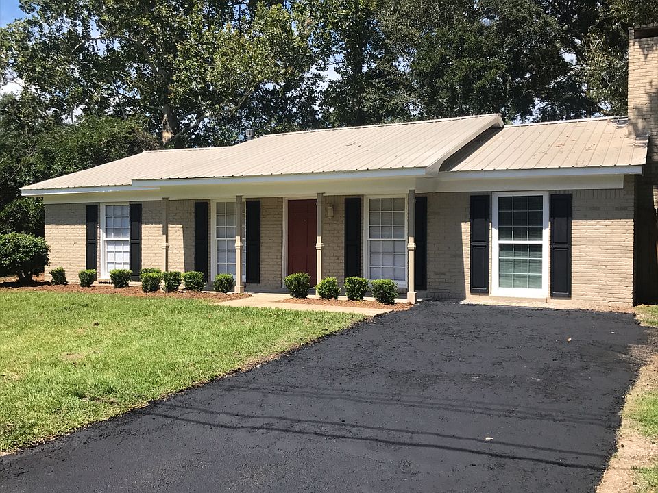 All brick with metal roof home with 3 Bedroom , 1 Bath , dining room , kitchen , large living room , larger bonus room , utility room with washer / dryer hookup in quiet neighborhood with fenced in back yard . Central air and heat . Gas stove , heater and water heater . New engineered plank flooring throughout and tile in kitchen / bath . Less than 3 miles from the University of South Alabama's campus entrance .