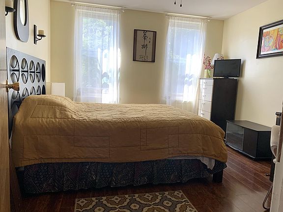 Beautiful cozy, huge, Fully Furnished 2 BR apt 15 mins from Manhattan, Times Square!, Breathtaking skyline views, easy commute to the city, buses at doorstep. Surrounded by beautiful parks. fully furnished, easy commute, buses literally at the doorstep, run 24/7. Stunning Manhattan skyline views at door step. Best kept secret! **Queen bed in master bedroom - Single bed in second bedroom - Tennis courts, Basketball courts, kids play area all within 2 blocks! Laundry in Basement, Grocery stores one block away. Near by New York City, Hoboken, North Bergen, Weehawken, Edgewater, New York City, Jersey City, MetLife Stadium, East Rutherford, NJ Guest access All Furniture, *NEW hardwood flooring *NEW appliances, utensils, & beddings provided. 6 months to a year lease. Avail Immediately.