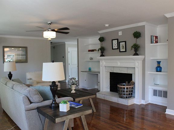 - Living Room: Fireplace, Floors-Hardwood, Molding, Ceiling Fan