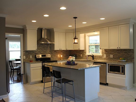 - Kitchen: Counter Tops-Granite, Eat In, Island, Floors-Tile, Backsplash-Tiled, Recessed Lights