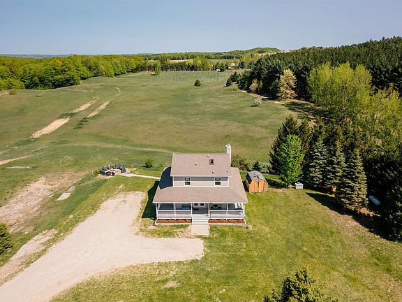 Perched on 11+ peaceful acres in Leelanau County, this beautiful 3-bedroom, 3.5-bath farmhouse (4th non-conforming bedroom in the basement) offers the perfect blend of rustic charm and modern comfort. With 2,000 square feet of inviting living space, the home features a spacious wraparound porch perfect for morning coffee or sunset views. Inside, you’ll find a warm, farmhouse-style interior with cozy living areas, a well-equipped kitchen, and ample room for hosting family and friends. After a day of exploring the Sleeping Bear Dunes or nearby beaches, unwind in the private hot tub under the stars. The home also includes a backup generator, on-demand water heater, water softener, and a new constant pressure well. Surrounded by nature yet just minutes from Traverse City, Glen Arbor, Suttons Bay, and the region’s best wineries, this property offers privacy without isolation. Whether you’re looking for a serene retreat, an income-generating rental, or both — this home is a rare find in Leelanau County.