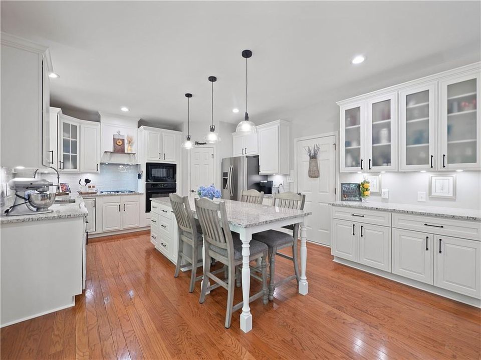 - Features: Breakfast Bar, Breakfast Room, Cabinets White, Eat-in Kitchen, Solid Surface Counters, Stone Counters, View to Family Room