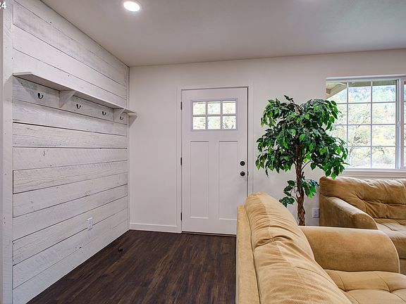 Welcome to this extensively renovated farmhouse located in the desirable Fair Oaks community of West Sutherlin, just a stone's throw from the Fair Oaks Fire Dept and picturesque Calapooia Creek. Enjoy public water service and low county taxes! This charming home boasts a lovely covered porch that invites you to relax and enjoy the serene country setting.Step inside to discover a home that is almost entirely new, from the studs in and out! Enjoy modern upgrades throughout, including fresh electrical in both the home and the impressive 20'x60' shop, which also serves as a detached garage with ample space for a workshop, storage, or potential ADU conversion. The renovation includes new plumbing, framing, insulation, doors, windows, as well as a completely new kitchen and bathrooms, roof, deck, septic system, and fixtures.Indulge in luxurious LVP flooring that flows seamlessly throughout the home, complemented by cozy carpet in the bedrooms for added comfort. The kitchen features a pantry and brand-new stainless steel appliances, perfect for any culinary enthusiast.The property includes an ATT sewer system installed by Umpqua Septic, ensuring peace of mind. The spacious shop not only offers abundant storage but is also plumbed for a future bathroom. Additionally, you'll find RV parking with full hookups, making this property ideal for outdoor adventures.All of this is set in a tranquil rural environment, yet just minutes from town! Don't miss your chance to own this beautifully updated farmhouse in the sought-after Fair Oaks community!