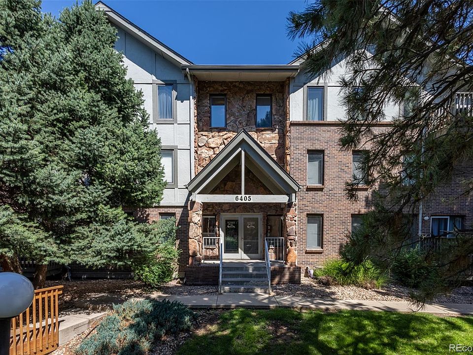 Charming two bedroom, one bath, corner unit with a 15 by 4 foot patio and secured and deeded underground parking (space #10)! This is the perfect starter home in a wonderful location near great shopping and great highway access. The whole building has new plumbing, new bathroom fixtures, newer furnace, quality casement windows and all new stainless kitchen appliances. There is also elevator access to this unit. The building and grounds are beautifully maintained with a lovely outside pool for summer enjoyment. You will also love the convenient location which is close to restaurants, Home Depot, Walmart, Sprouts and the light rail station. Ready for a new owner and seller can give a quick possession. Check it out. You will not be disappointed.