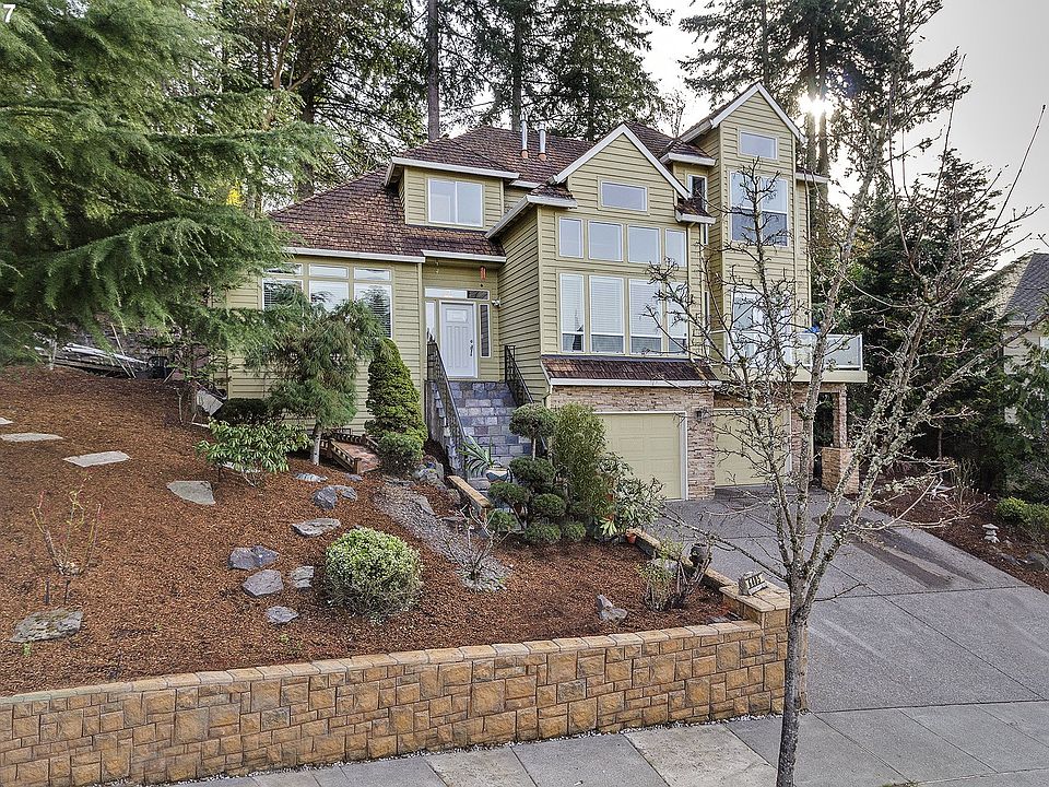 Almost new home for family w/great schools & quiet location; Brand new roof; Newer carpets and interior paint.Home w/views and private composite deck 1,000 Sq-Ft.Matured landscaped,trees,back to natural park;Under deck covered storage;Front balcony w/views;Vaulted ceilings;Double sided gas fireplace;Large kitchen w/slab granite countertops;Kitchen w/maple wood cabinets, pantry, SS appliances;AC.