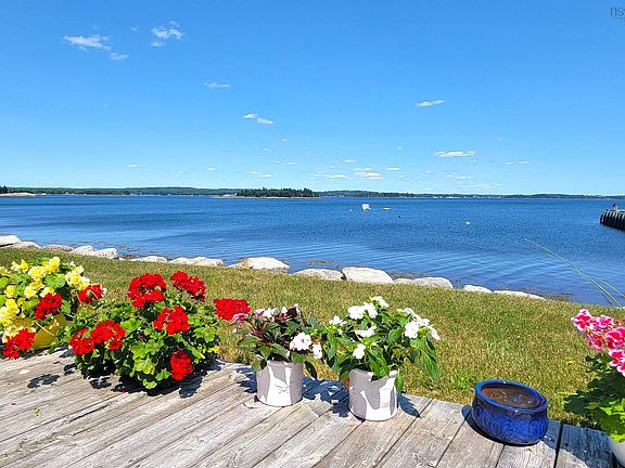 "Where shall we adventure, to-day that we’re afloat, wary of the weather and steering by a star?" The dawn breaks each morning over the sea in front of this home. Looking east to the famed Oak Island, and with one of the most beautiful ocean vistas in Lunenburg County, this one level, two-unit home has been a cherished family retreat for the last thirty years. The outdoor deck and lawn have hosted summer parties for sixty people or more - relaxing and enjoying family get-togethers against the panoramic sea view. The main living area features a large open concept kitchen dining area with seating at one end. The living room, with its stunning water views features an open fireplace constructed with antique brick. The cathedral ceilings lend to the open feel in the common living areas flanked by a bedroom on each side. The south wing of the home has a spacious, self-contained, one bedroom apartment. The attached garage would be a prime candidate for conversion to an additional suite, and the central owner's suite could itself be subdivided if one felt so inclined. This home is adjacent the former community wharf for Western Shore - now in private hands - therefore boat traffic next to this home is limited, affording desirable privacy. Granite steps lead to your own private, pebble-beach which is certain to please young family members looking to enjoy summer recreation. A grocery store and restaurant are only a short walk away, Oak Island Resort and Conference Centre two minutes' drive away, and the city of Halifax is less than a one hour drive. The desirability of this location cannot be overstated and, at this price point, especially considering the private access beach, certainly a rare find in today's market. Direct oceanfront looking across the waters of Greater Mahone Bay to Oak Island !