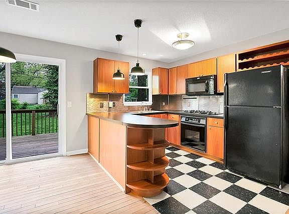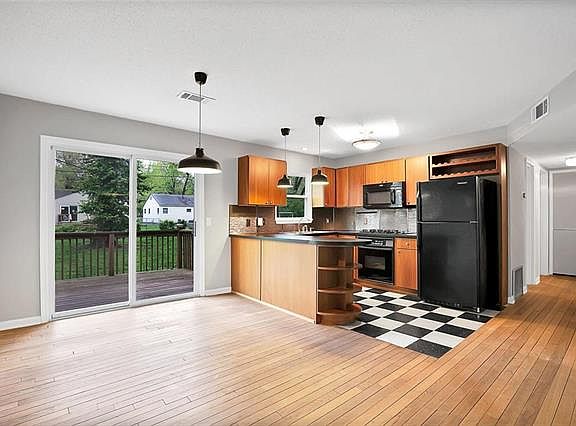 Walk to old downtown OP! Charming, updated ranch in quiet, close-in area. Close to schools, shops, & parks. Open plan, large lot, hardwood floors throughout, neutral decor with Pottery Barn colors. Newer roof, furnace, AC, HW, kit appliances, windows, & deck. Updated kitchen and bath. LR, DR, and kit open to nice rear deck & huge fenced backyard -great for pets or entertaining. Good sized MBR & closet space for price range. Lg laundry/mud rm w/blt-ins . Plus fridge, washer, dryer stay. Check it out!