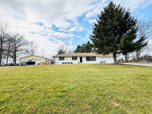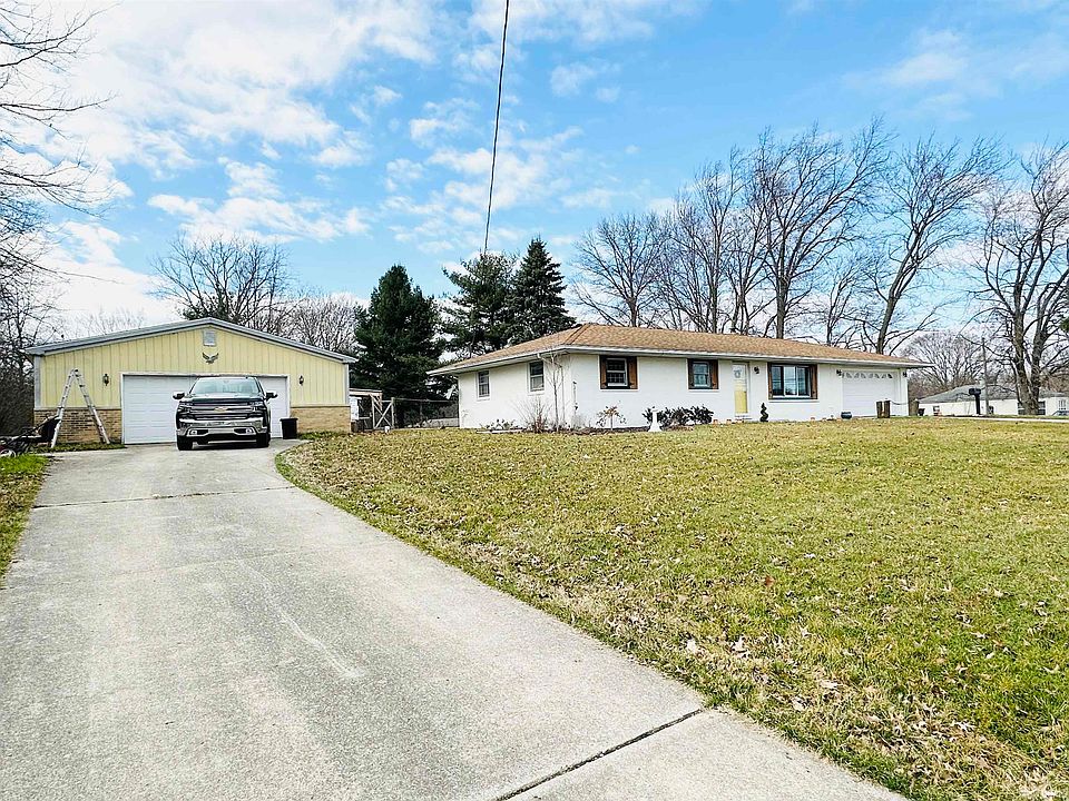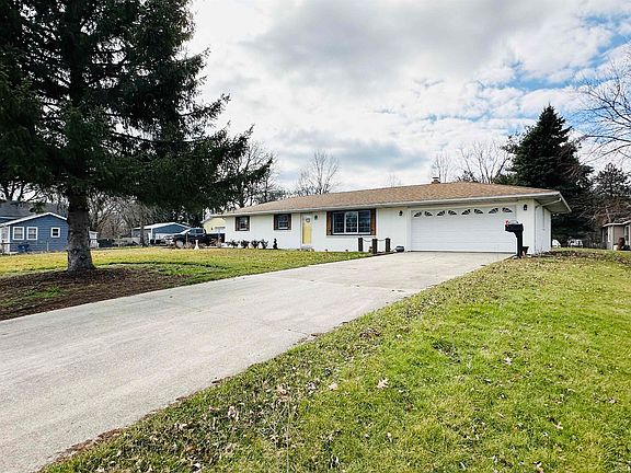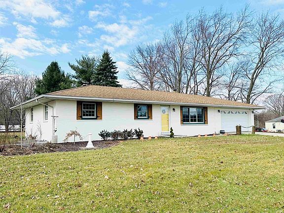 Beautiful Very clean ALL brick ranch in Lakeville. Laville schools. 3 bedrooms and 1.5 baths on .95 of an acre. 2 car attached garage. Insulated 30x40 pole-barn with electric, and a concrete floor. The home has hardwood flooring. Eat-in kitchen with newer appliances and vinyl plank flooring. Built-in gas stove top and oven. 2023-new full bath. New windows in front(10k). Natural gas heat, central air, and a whole house fan. Finished basement for entertaining with a bar and a gas log fireplace. Large laundry room storage area with a utility sink and water softener. 200 amp electric. 4" well. 2 large double wide concrete driveways. Patio. Fenced in area with a chicken coop or dog run. 3 apple, 1 pear, and 1 peach tree. 5 raspberry bushes, rhubarb and asparagus. Just a great package deal that won't last long! Located just south of South Bend. Call today!