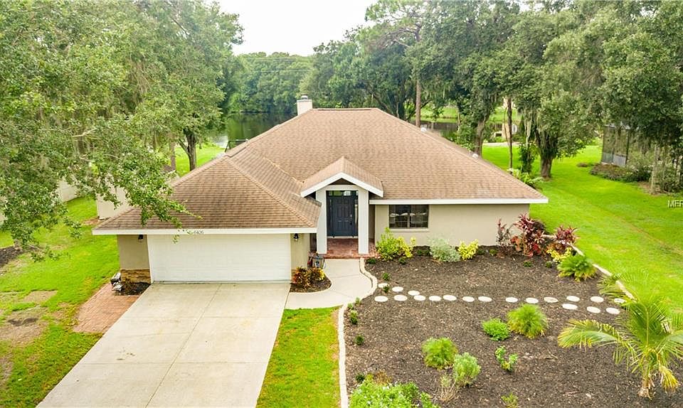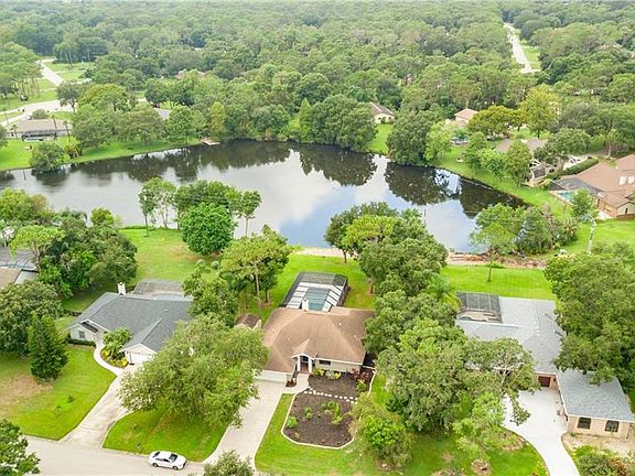 Mature landscaping greets you as you enter the very desirable Braden Woods neighborhood! Enjoy this large lake view homesite that captures the beauty of Braden Woods. This exceptional 4 bedroom home offers an open floor plan with an updated kitchen showcasing wood cabinets, granite countertops and stainless steel appliances. The kitchen opens to a family room with brick fireplace and vaulted ceiling to enjoy a variety of gatherings. A dining room is also featured off the kitchen and could be used for many purposes. A large bonus room is situated at the back of the home. Master suite features wood floors, chair rail, large walk in closet and ensuite bath has updated custom cabinetry with granite tops,chair rail, and custom tiled shower. Secondary bathroom has been updated with custom cabinetry, granite countertop, picture frame mirror and custom tiled tub walls. The expansive outdoor space with 10x17 covered area and 15 x 30 pool on this home are magical with a beautiful backdrop of established landscaping and lake views. Secondary bedrooms showcase wood laminate floors. Spacious laundry room with custom cabinetry. The exterior and interior of this home along with the pool deck were just freshly painted 2018. Kitchen, baths, HVAC, flooring, water heater updated in 2012. Updated light fixtures and ceiling fans. 2016 pool and deck was resurfaced, new pool and filter as well.
