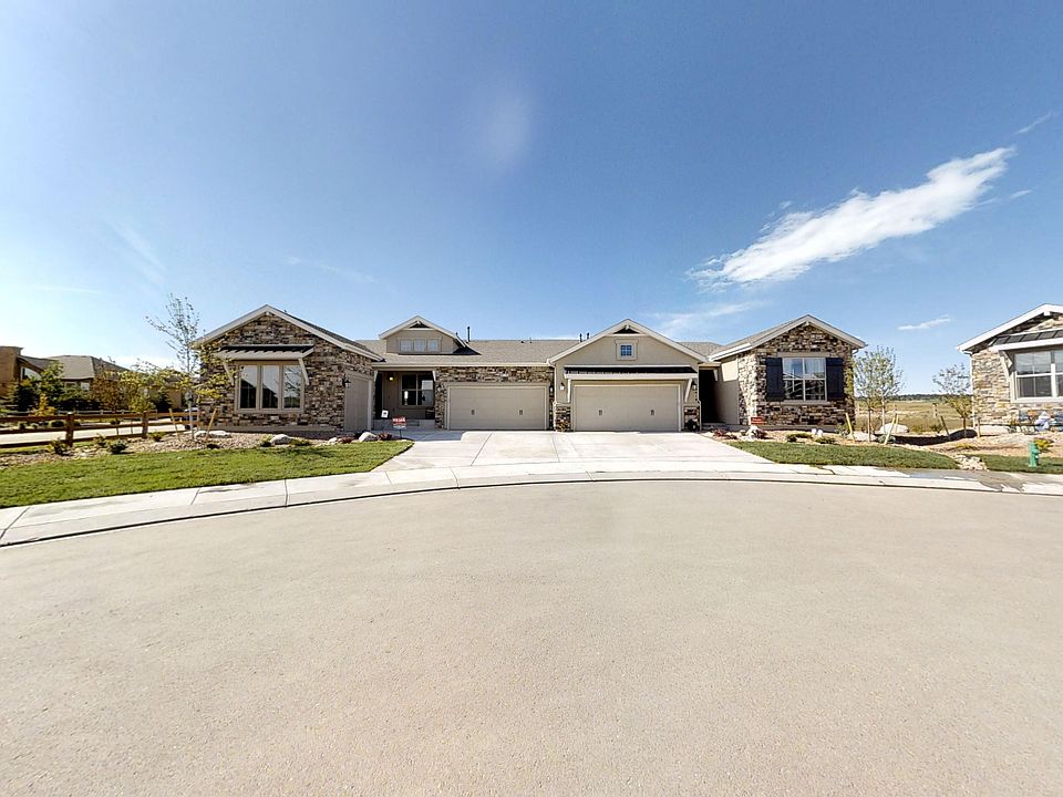Ready Now! San Isabel paired patio ranch plan with 3 car garage in Wolf Ranch. 4 bedrooms plus study, 4.5 bath home with finished basement. Barn door at master. Includes 2 gas fireplaces and air conditioning and wood closet shelving. Finished basement includes 1ft. taller ceilings, wet bar, plus 2 bedrooms, 2 bathrooms and recreation room. Exterior living includes expanded patio with iron fence, gate and gas line.