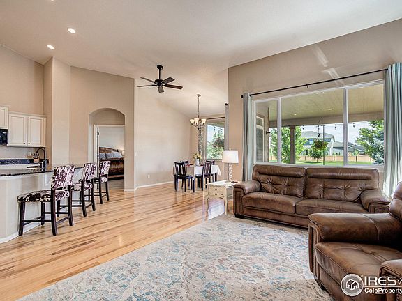 Welcome home! This custom floor plan features 2 beds PLUS a dedicated office/study (or potential 3rd bedroom) on the main and 2 more huge bedrooms down with a large bath and massive rec room! This open floor plans is lush with upgrades including 42 inch cabinets with soft close in a beautiful color, REAL hard wood, a great butlers pantry/coffee bar with tons of cabinets, custom wrap around patio, and a large eat-in kitchen/dining room. The soaring ceilings just accentuate the large 1,800+ main level and the adorable patio with the majority of northeastern exposure opens up the option to enjoy warm summer evenings in the backyard. All of this is nestled into a fully landscaped, fenced, lot with a south facing driveway. Of course, the neighborhood loaded with amenities from a school right in your community to a great pool w/ big slide, walking trails and so much more - you don't want to miss it!