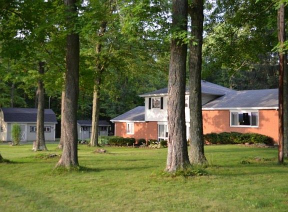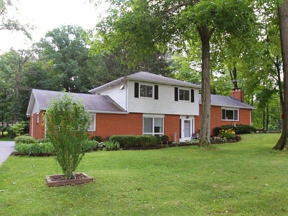 Well maintained home with stunning hardwood floors! Enjoy the country - so close to the city amenities. Situated on a beautiful partially wooded lot. Large deck and hot tub to enjoy in the outdoor living space. Two out buildings one is 16' x 20' Amish built storage building with 2 double doors, one entry door & built in workshop. Generator & hot tub to convey. The spacious great room is open to the dining room & kitchen areas. Stunning stone surround fireplace in the great room & enjoy the convenience of the 2nd fireplace in the lower level.