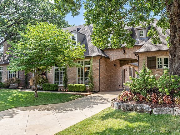 Stunning and Beautifully Updated Home in The Gates at Forest Park. This fully remodeled home is located in the highly desired South Tulsa “Miracle Mile” and award-winning Jenks Southeast Schools. 5 Bedrooms, 4 full bathrooms, 2 powder baths, office, formals, game room, outdoor living/kitchen and 3 car garage. Vaulted ceilings throughout offering tons of natural light. Multiple living spaces, large formal dining room with bar flowing to gourmet kitchen equipped with super white quartzite countertops, top-of-the-line appliances, and custom cabinetry. Kitchen opens to family eating nook and spacious den with fireplace. Private primary suite with double sided fireplace opening to a full marbled finished luxe bathroom with large walk-in closet. Warm vaulted office with fireplace and storage closet. Upstairs offers 4 large bedrooms with walk-in closets & private bathrooms, game room with beverage area, tons of storage. Double staircase for family convenience. Interior leads to an amazing outdoor living space equipped for year round enjoyment. Newer outdoor kitchen and lounge. Professionally landscaped, property sits on over 1/3rd acre and backs to a reserved park-like setting. This renovated home is an entertainers dream with high-end finishes and unparalleled attention to detail.