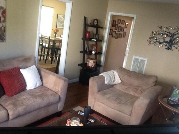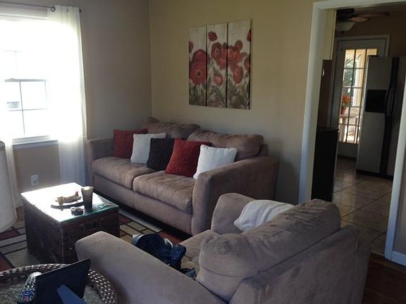 Cute 2 bedroom house on a quiet street in the Nations / Robertson neighborhood. Available July 1. Fully fenced backyard, hardwood floors, wired for Google Fiber, stainless steel appliances, neutral paint, new roof, new windows, new water heater, new central heat and a/c, washer and dryer provided and driveway parking. Application fee per adult for credit and background check. Pet fee of $300 per pet (max of 2 pets). Tenant is responsible for yard. Alternative, if you want yard upkeep included, rent is $1450. Credit check required. Background check required. Income will be verified. Tenant responsible for yard upkeep.