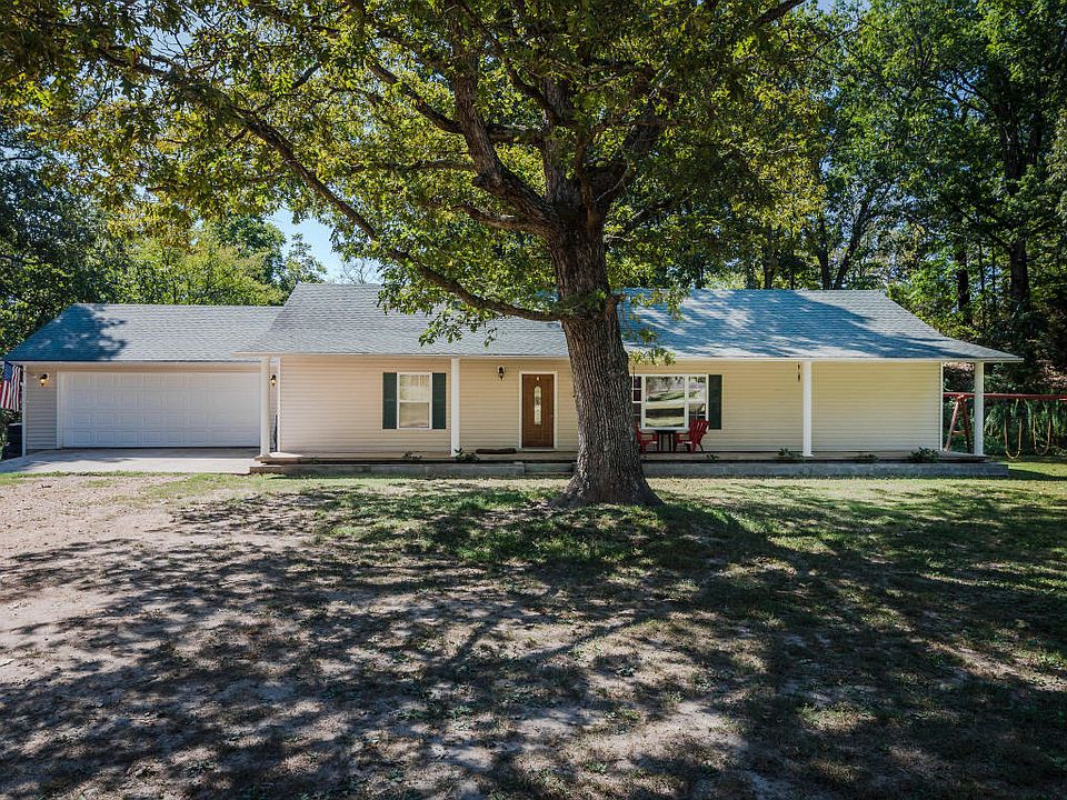 Privacy and Convenience! This spacious home is on two tree shaded lots covering 2.20 acres, has vaulted ceilings with an open great room, split floor plan, large covered porch, nice master with huge walk in closet, two car garage, large storage/outbuilding, and all in Bergman school district only 10 minutes from Harrison.
