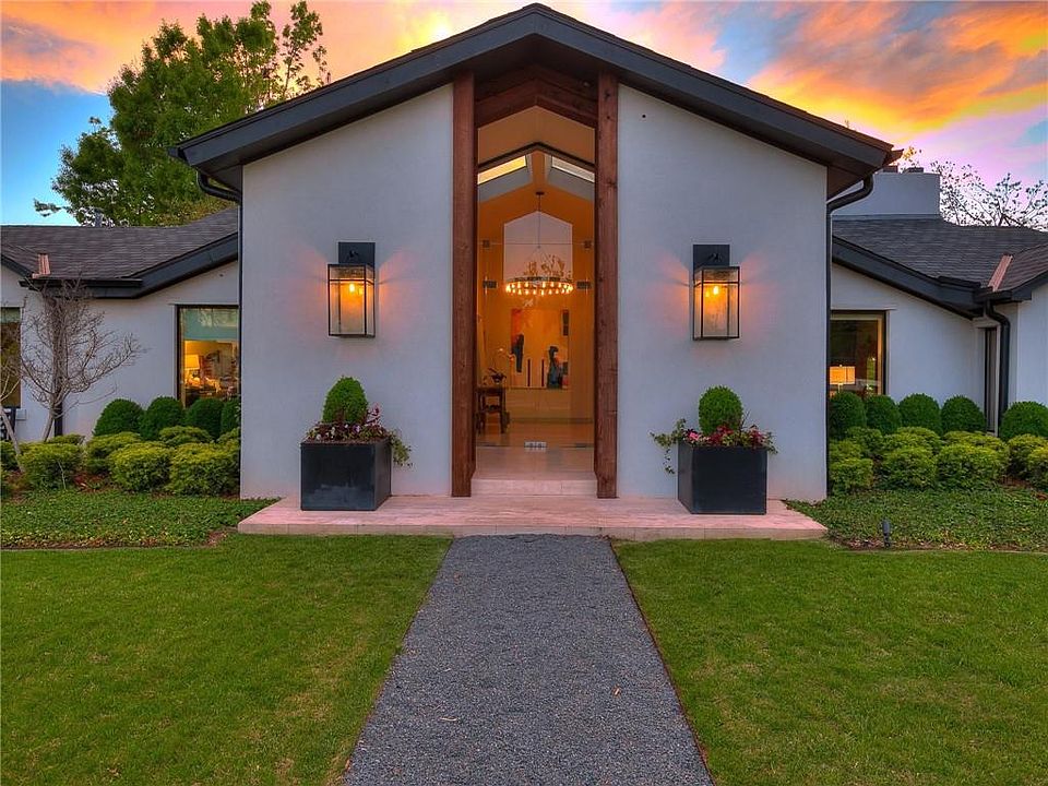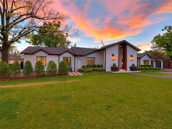 Spectacular Nichols Hills mid-century modern situated on more than one half acre on North Hillcrest Avenue. Walls of glass capture spectacular views from every room of the 4 bedroom 4 bathroom main house. In addition the guest house provides yet another bedroom, kitchenette and full bathroom. Recent updates abound throughout the home including the main kitchen and primary suite with a complete exterior renovation taking place in 2019. From the resort style backyard and cabana to amazing architecture and prime property location this home offers it all. Schedule a private showing before this one is gone!!