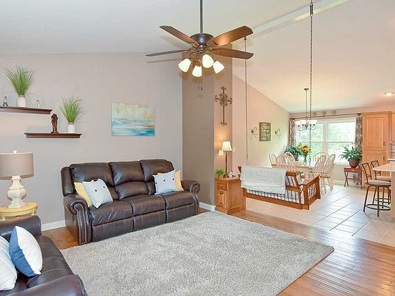 Welcome Home to 6406 Old State Road conveniently located close to North Park for easy commutes, shopping and entertainment! This H.G. McCullough Designed custom built home offers 3 bed/2 bath with 2,108 sq ft on .61 acres on a corner lot in town! Upon entering, you will find an open floor plan with a cathedral ceiling above the living area, dining and kitchen. The living area has hardwood floors and the kitchen has Fehrenbacher Cabinets, newer stainless steel appliances, new quartz countertops and tile backsplash complete with neutral ceremic tile. The two bedrooms and full bath with Fehrenbacher Cabinets offers double closets, crown molding and ceiling fans which round out the main floor. The walkout basement has a huge living space with an area for a game table, the 3rd bedroom with walk in closet and 2nd bath, oversized laundry room and a safe room used as a storage room. This home sits on 3 lots, has a covered patio with wood ceiling and ceiling fan, another patio with a privacy fence and two outbuildings for extra storage. You'll love the two car attached garage with lots of cabinets, extra parking area, room to build a pole barn and the professional landscaping. All major updates within the last 7 years (ROOF, WINDOWS, HVAC, WATER HEATER, UPSTAIRS WOOD FLOOR AND CARPET) This well built home is PERFECT for entertaining and ready for its new owners!