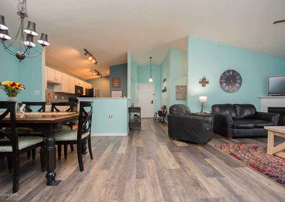 Award winning South Oldham school district. Spacious (over 1500 sq ft) 3 bedroom, 2 bath condo with attached garage and reserved parking place right at the building entrance. This unit also has vaulted ceilings and a fireplace. ALL NEW in 2018 - Flooring throughout, light fixtures, cabinets, counter tops, back splash, all faucets, modern vanity top in hall bath and paint. AND BRAND NEW larger AC unit with a 10 year warranty! Over $20,000. worth of renovations in the past 18 months!! Building got new roof less than 1 month ago.All appliances remain. Balcony overlooks green space. Community includes a clubhouse with kitchen and gym and a pool. Schedule your showing today!! Agent is related to the seller.
