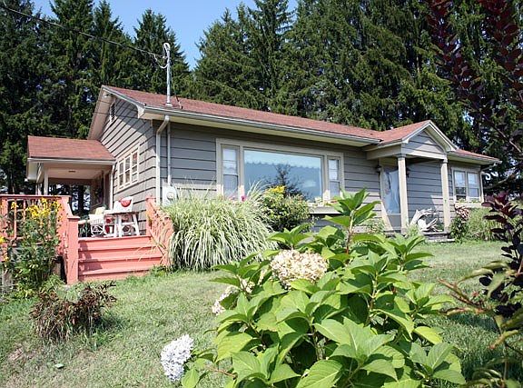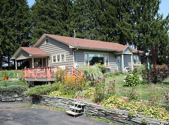 2 bedroom 1.5 bath ranch home in very good condition. Large livingroom (12.5x25.5) with lots of light. Beautiful hardwood floors (under carpeting) and woodwork. Large country kitchen overlooking beautiful flower gardens. Master bedroom is 22x12.5 with half bath. 9.5x11.5 room and half bath with separate entrance was a hair salon at one time. Could be home office/studio. Home has central air conditioning. Lovely stone walls and flower gardens. Additional outbuilding/garage would be perfect for studio/cottage. Enjoy the country views from covered porch/deck. Minutes to Bethel Woods or Callicoon on the Delaware for shopping, restaurants and movie theater.