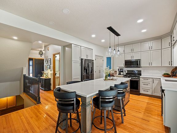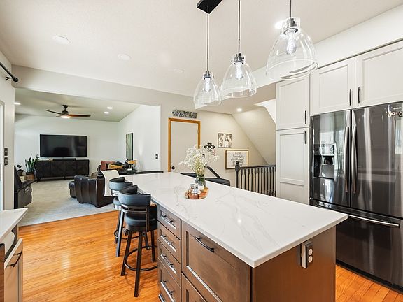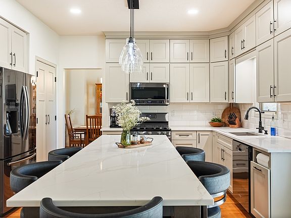 JOHNSTON SCHOOLS! This home is GORGEOUS with a complete kitchen remodel w/ new cabinets, huge quartz island with seating, & hardwood floors. You'll love spending time outside on the beautiful 18X24 covered stamped concrete patio w/ professional landscaping. The primary bedroom is huge, has an extra large closet and an updated bath. Owners recently replaced all 23 window sashes. Large 3 car garage that has 3rd stall that is extra 10' deep & insulated doors. Finished basement with 5th bed, bath, 2nd laundry area, cedar closet, & family room! Main floor ceilings are 9'. New furnace and water heater in '22. Attic has solar attic fan. Separate irrigation meter. Too many more upgrades to mention! Super clean & move in ready! Back on the market due to buyer financing.