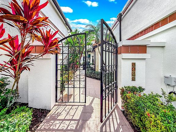 Welcome to luxury country-club living without the mandatory membership! Nestled in the highly sought-after Villa Flora enclave of Boca Pointe, this stunning one story single-family home with a pool offers 3 spacious bedrooms, 3 full bathrooms, and over 2,300 sq ft of elegantly updated living space. Step inside to soaring volume ceilings, an abundance of natural light, and an open-concept floor plan perfect for both entertaining and everyday living. All newer porcelain tile floors throughout, updated bathrooms and brand new kitchen appliances (2025). Enjoy true South Florida living in your private screened lanai and sparkling pool overlooking the lake — perfect for morning coffee or sunset cocktails.