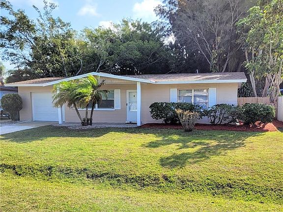Super Move In Ready Gold Medallion Home!! This 2 Bedroom, 1 Bathroom, Large 1 Car Garage (24x14) Home offers Brand New Shingle Roof 2021, Water Heater 2019, AC 2005, Newer Garage Door, Freshly Painted Interior, NO CARPET only Terrazzo & Tile, New Kitchen with New Range & Refrigerator, Florida Room & Spacious Fenced Rear Yard with Pond View.