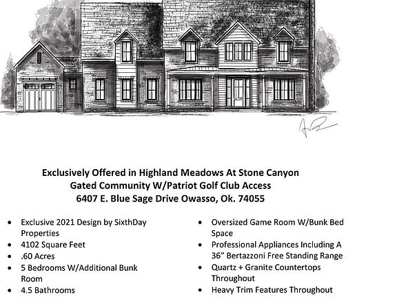 This luxury designer home by Sixth Day boasts 5 full bedrooms (2 down and 3 up), 4 1/2 bathrooms, office & gameroom which also has built in-bunks & a large closet.Upstairs has a common room off the landing that is essentially another living room.Laundry room connects to master closet, full wet area w 2 showers & free standing tub in masterbath.Pella wood clad windows & garage doors, professional appliances, quartz & granite countertops, wonderful front & back porches. All on .5AC+ in gated Stone Canyon.