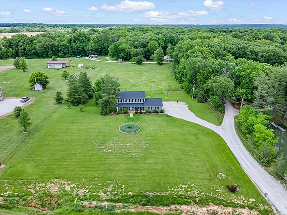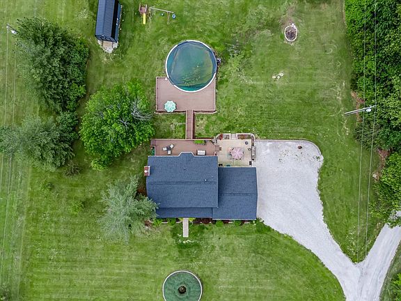 This home is your gateway to summer bliss, offering nearly 3 acres of land, a sprawling back deck, a covered front porch, and an above-ground pool. This charming two-story home in the Waterloo School District features a half bath on the main level, 4 bedrooms upstairs, and 2 bathrooms. Approach the front door and you'll be welcomed by a covered front patio. Inside, the foyer leads you to a spacious living room with a wood fireplace. The open floor plan flows into the kitchen, equipped with a center island for additional seating and a pantry. The adjacent dining room offers flexibility, doubling as an office space to suit your needs. Upstairs, discover 3 bedrooms, a bathroom, and a master bedroom with an attached bathroom. The master bathroom features both a shower and a jacuzzi tub. Outside, the back deck overlooks over an acre of land. The attached two-car garage includes a small work area. Don't miss out on the chance to turn this house into your own personal oasis!