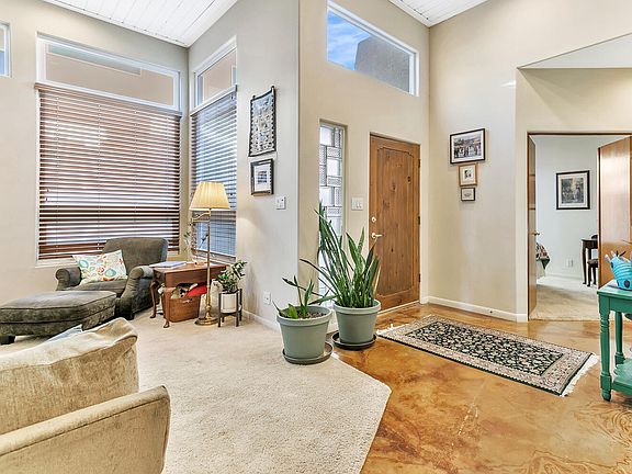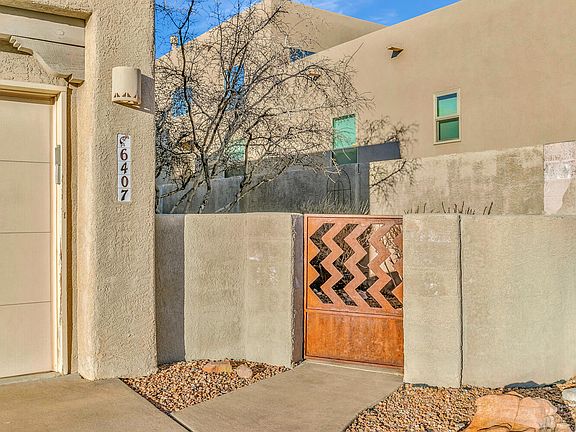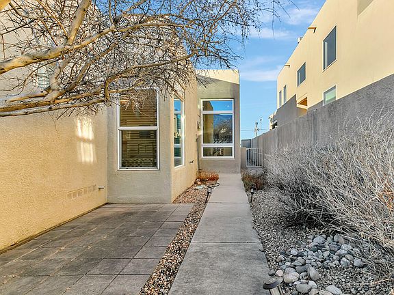 Open & airy townhome on a private cul-de-sac in High Desert. Wonderful, one-level layout features an open floor-plan with lots of natural light. Stained concrete floors, high ceilings, clerestory windows. Great room features tongue and groove ceilings and a gas-log fireplace. Kitchen offers stainless steel appliances and a sandstone bar. Main Bdrm features a large walk in closet, double sinks and separate shower/jacuzzi tub. Private setting with 2 separate outside patios. A great value in in one of Albuquerque's most sought after neighborhoods!