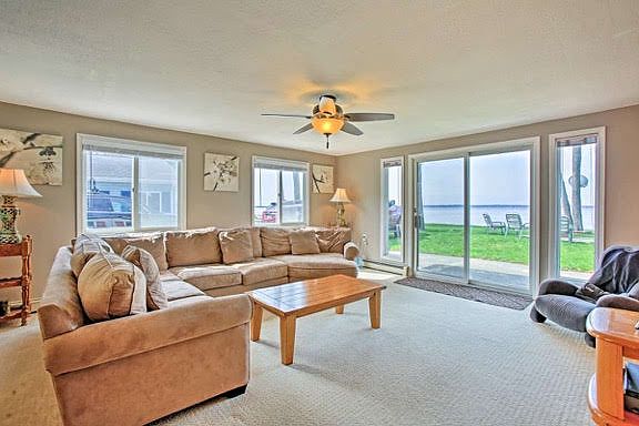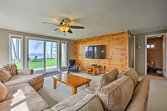 Beautiful updated lakefront home! Home sits with 50 feet of private frontage on the largest inland lake in Michigan, Houghton Lake. Great views of the water from out the slider doors, and a great outdoor sitting area! The main floor has one bedroom and a full bath. Two living spaces, an eating area and a large kitchen with granite counter tops. Upstairs, two large bedrooms that have room for two beds and a full bathroom! Laundry is on the main floor! Garage is extended, with plenty of room to store toys! Home will come fully furnished!