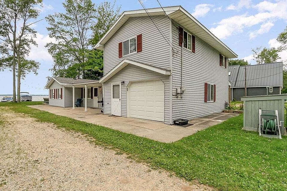Beautiful updated lakefront home! Home sits with 50 feet of private frontage on the largest inland lake in Michigan, Houghton Lake. Great views of the water from out the slider doors, and a great outdoor sitting area! The main floor has one bedroom and a full bath. Two living spaces, an eating area and a large kitchen with granite counter tops. Upstairs, two large bedrooms that have room for two beds and a full bathroom! Laundry is on the main floor! Garage is extended, with plenty of room to store toys! Home will come fully furnished!