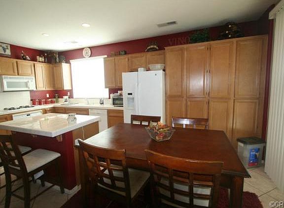 Great, corner lot located in the Heartland Community! 4 bedrooms, 2 FULL bathrooms with almost 2,300 sq ft of living space to enjoy. Walk into a extra large living room and formal sitting area. 4th bedroom, currently used as office, can be closed up to use as 4th bedroom. Spacious kitchen with nice cabinetry, custom built-in pantry and breakfast bar. Family room right off of kitchen, gives you extra area for entertaining. Cozy fireplace, for those cold winter nights. Sliding glass door, opens to covered patio and grass play area. Princesses dream with dual sinks in full hall bathroom. Queens dream with an extra large master bedroom complete with a walk in closet, separate toilet, spa type bathtub and separate shower. Convenient inside laundry room, right next to direct garage access. Custom tile and carpeting through-out, along with several other upgrades. Home has solar power seller pays Edison less than $1 per month and a flat $159 month solar lease what a bonus call for more details on your clients savings!