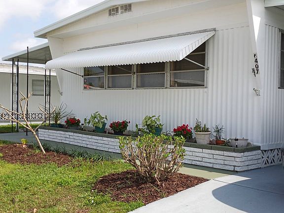 This is a mobile home for sale in a 55+, pet friendly community on a rented/leased lot. There is over 1,200SF to enjoy in this 2BR/1.5BA mobile home with numerous updates, being sold partially furnished. The exterior of the home has been freshly painted in 2021. The roof was sealed and new ridge cap installed in 2020. The galley kitchen has panel walls, 12" vinyl flooring, custom paint and tile backsplash. The living room and formal dining areas have laminate flooring, custom paint, panel walls and mini blinds. There is a custom built in hutch in the dining area. The living room opens to an 12 x 20 porch with acrylic/screened windows with a wall a/c and concrete floor. Bedroom one has carpet, three closets, built in dresser, a pocket door and a 1/2 bath en suite. Bedroom two has laminate flooring, two closets, built in dresser, custom paint and a pocket door. The hall bathroom has a single sink vanity, 12" vinyl flooring and a walk in shower. The carport can park 1 car. The 12 x 17 screened in carport lanai has a shed on the back that houses the washer and dryer (included in the sale). The lot rent is $532 and includes trash and lawn cutting, blowing, edging and the following: Amenities * Shuffleboard Court * Billiard Room * Fitness Center * Boat/RV Storage Pet Policies * Pets Allowed: Yes * Pet Restrictions: 2 dogs each less than 25 pounds. Additional Details * Off-Street Parking * Clubhouse * Sidewalks * Swimming Pool * Recreational Facilities * Year Built: 1960 * Number of Sites: 265 Hawaiian Village is conveniently located in Bradenton within walking distance to services and bus routes. Ride the bus to the beach! Florida MH Sales, LLC cannot guarantee or warrant the accuracy of this information, measurements or condition of any property. Measurements are approximate. Lot rent is subject to change.