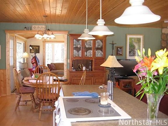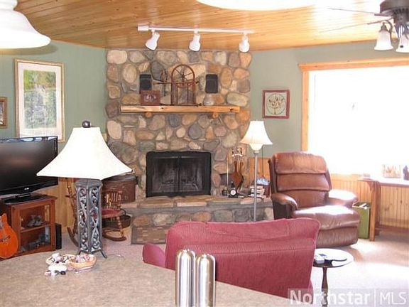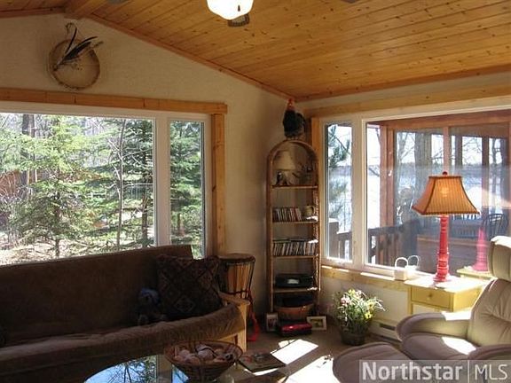 Flooded w/natural light, great room, huge stone frplce, lake facing w/sunroom and gazebo. North Ctry Hiking Trl in back, island view to DNR protected shoreline in front. Sand lake bottom.