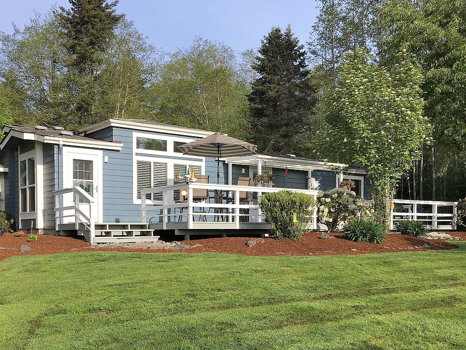New construction, single level home on private waterfront acreage. Over 200 feet of no bank waterfront on Mats Mats Bay. 1.58 acres. Invoting double door entryway. Vaulted ceiling Great Room with fireplace and stunning views of Mat Mays Bay to covered patio access. Gorgeous kitchen with large island, stainless appliances, and brushed granite countertops. Spacious Master Bedroom with vaulted ceilings, water views, & walk-in closet. 5 piece Master Bath has 2 sinks with a large soaker tub to relax in. 2 additional spacious bedrooms with full tiled bath.