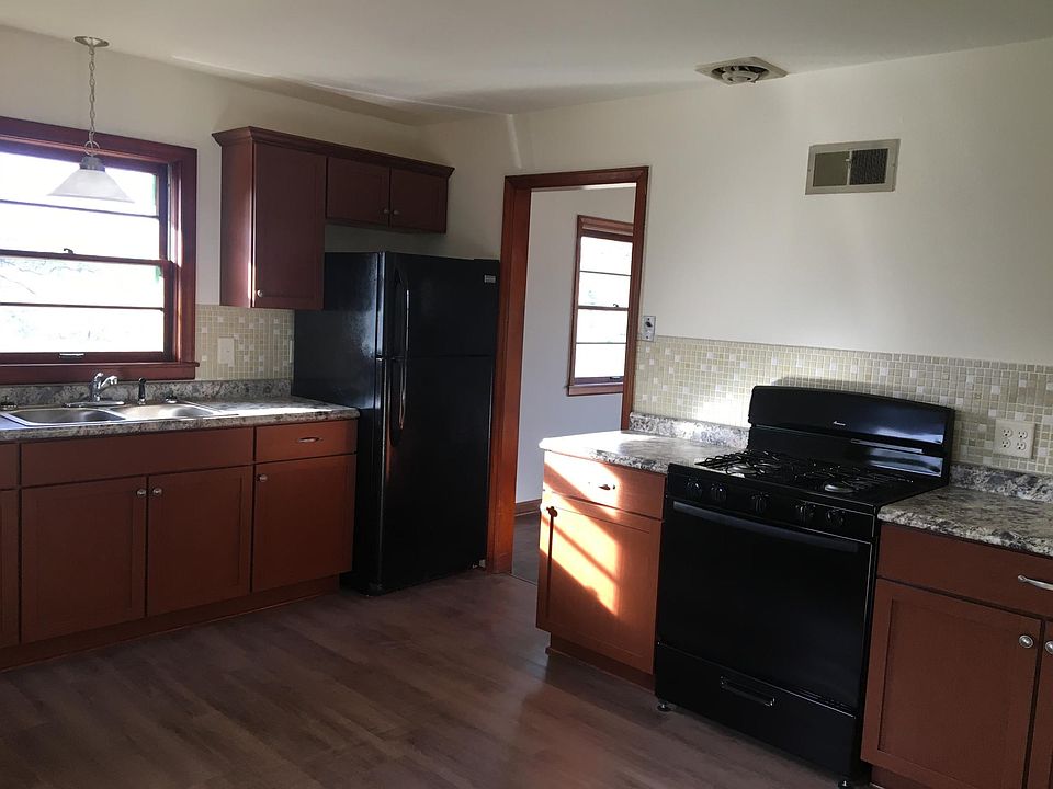 Newly remodeled kitchen, hardwood floors, HUGE yard, New A/C unit, Outdoor pets allowed, Large unfinished walkout basement with storage shelves Tenant responsible for all utilities and lawn care