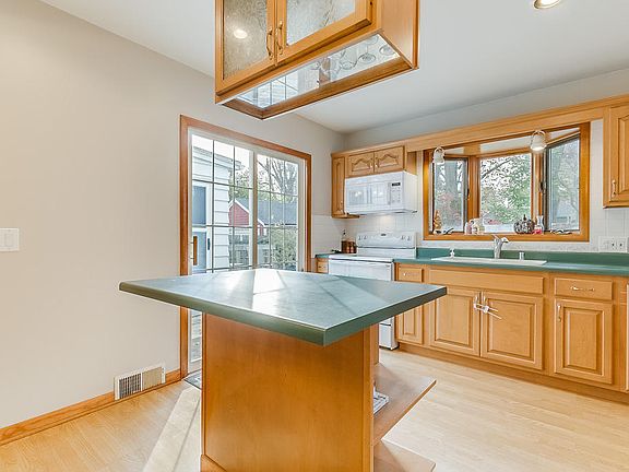 Awesome and very spacious brick Cape Cod in Forest Park area. Huge eat in kitchen with island, pergo flooring, beautiful cabinets and ceramic tile backsplash. Some newer windows, fresh paint and carpeting. Very nice three season room overlooking the fenced yard and deck. The basement is finished and has a rec room and bar.