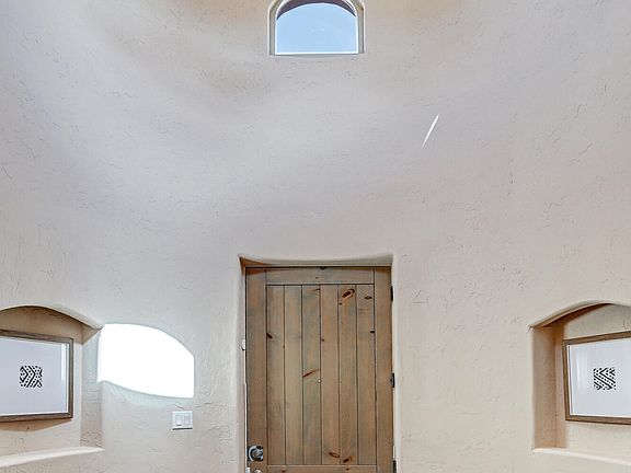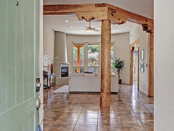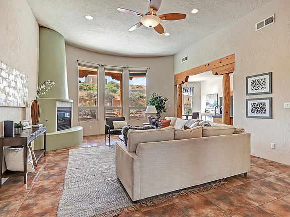 Custom built, single story SW style home with 4 bedrooms, 3.5 baths, & 2 primary suites all situated on a half-acre with mountain views. An open floorplan with 12' ceilings, skylights, floor to ceiling kiva fireplace, nichos, pillars, beams & corbels add to the house's grand feel. The kitchen has ample counter & cabinet space with a large pantry. The main primary suite is an oasis with a corner garden tub, sperate shower, water closet, double vanities & huge walk-in closet. The second primary suite is at the front of the house for added privacy. Owned solar with no monthly payments is a huge plus to keep the energy bills low with refrigerated air. Water softener & private well. Private front courtyard & backyard are beautifully landscaped. Finished oversized 2 car garage with epoxy floors