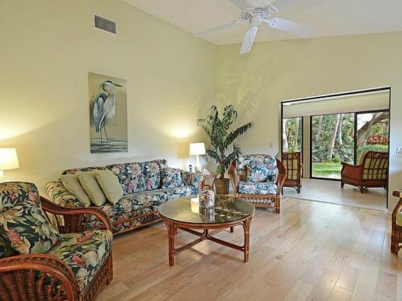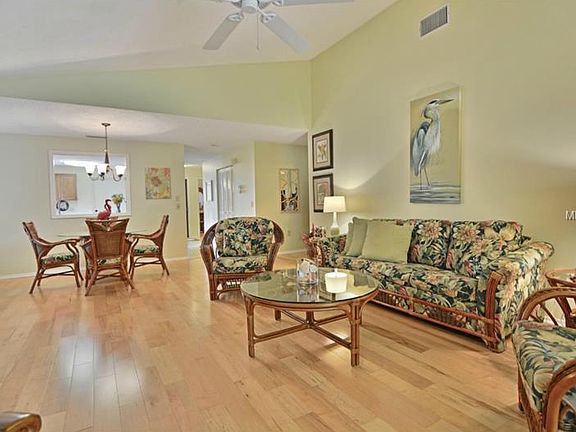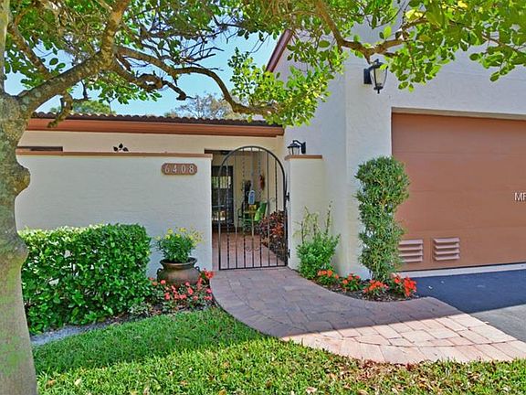 CLICK ON VIRTUAL TOUR TAB FOR MORE PHOTOS. Fabulous Villa and that is no exaggeration! Beautifully remodeled with a superb location! Nestled with lush garden views, choice exposure and steps to newly refinished pool. The sunny courtyard entry with wrought iron gate is enhanced further with brick pavers. Handsome new porcelain 18 x 18 tile on the diagonal for your foyer, kitchen, guest bath and Florida room. The Great room with vaulted ceiling has warm interlocking solid 3/8th plank maple wood flooring which is also featured in the large Master bedroom and Guest suite. The kitchen has been upgraded with solid birch wood cabinets and stainless steel appliances (only 2 years old approx.) Entertaining off the kitchen is delightfully easy with charming side patio having trellised arbor and brick pavers. The master bath is scrumptious with marble vanity and flooring and luxurious new shower with ceiling to floor glass enclosure, thermostatically controlled rain shower head, pebble stone floor and glass tile wall inserts. New commodes in both baths, fittings, lights mirrors ect. Light and bright and freshly painted for the perfect move in experience. This lovely villa also has the advantage of being two feet wider than others of this design. Country club amenities available with IMG's championship golf course and bayfront dining. Private tennis club also just down the street. Easy access to Gulf beaches and Sarasota cultural life make this a villa you don't want to miss!
