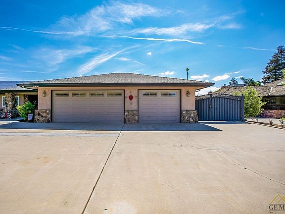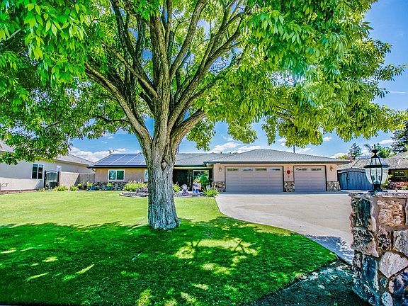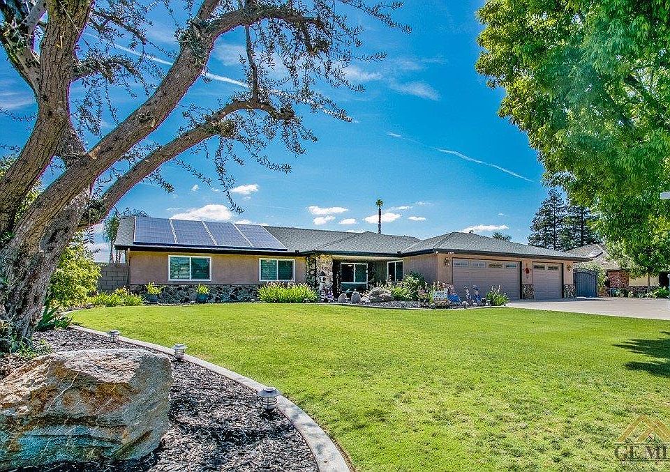 The lovely home in a super location us exactly what you have been looking for. Yes, move in perfect and upgrades all around, Plus nearly 3/4 acre parcel with 30'x40' steel building only 6 years old. 14'Eave Height with a man door and 12'x14' overhead door(electric to boot). Backyard is filled with excitement such as a long covered patio next to the large re-done pool. Patio with built in BBQ and oven and tile bar. Gorgeous fountain with waterfall and fish too. Beautifully landscaped back yard surrounding pool and offering large area for entertainment. Enjoy the spa and be ready to Deep Pit BBQ the turkey at Thanksgiving. Fencing and cross fencing with steel gates. Beautifully landscaped front yard as well. You must tour the residence to see all of the beautiful flooring and tile. Upgrade appliances and electrical fixtures. The laundry and storage area with a powder room is handy for the large heated and air conditioned bedroom being used as a great room. Free standing closet included.