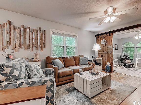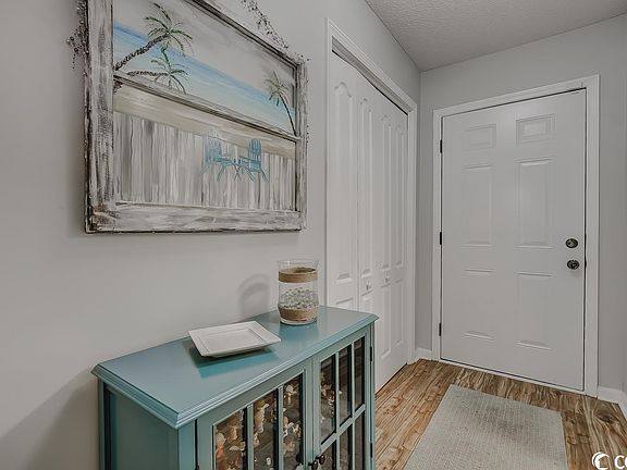 Like New! Completely remodeled 2 bedroom, 2 bath home with Office/Den and oversized 1-car garage in the gated Myrtle Beach Golf & Yacht Club. Nestled among the trees on a nicely landscaped lot on a quiet street with a wooded backyard view. This stunning home shows like a model and the pride of ownership and attention to detail are immediately recognized You are sure to be impressed from the moment you drive up to this lovely home with its dark green shutters, oversized driveway and welcoming low country front porch with two ceiling fans and white picket railing. Since the current owners purchased the house 5 years ago, they have updated and remodeled to include the following: new roof (4 years ago), new water heater, appliances, all duct work redone, both baths remodeled, new LVP flooring, added island in kitchen, added window in living room, shelving in living room, storage area and garage, added Barn door, front porch railing, added built in cabinets in kitchen and dining area, built in desk and cabinets in office, redid front sidewalk and all concrete in back. Extended the patio, resodded and landscaped the yard, new window blinds, ceiling fans and lights throughout, garage door opener, keypad on garage, hurricane shutters. From the moment you step into the house, it says new, updated, open and airy, with its LVP flooring in most areas, tile in the Carolina Room, neutral walls throughout, updated lighting and ceiling fans. This home features an open floor plan with a large living room and dining room area with ceiling fan and LVP (luxury vinyl plank) flooring throughout. Two double windows in the living area and floor to ceiling palladium windows in the family/Carolina Room make this home very bright and cheery. Totally updated kitchen with stainless steel appliances, Corian counters, lots of cabinets and counter space, work island, built in pantry and storage cabinet, window overlooking front yard and open to living area. An attractive barn door at the end of the living area leads into the spacious family/Carolina Room. This room features floor to ceiling palladium windows, tile flooring, chair rail, ceiling fan and sliders leading to the backyard patio. This is sure to be one of your favorite rooms to relax, read a good book or enjoy your favorite TV show. Or better yet, head to the private backyard with extended patio. What a great spot for grilling, entertaining and building memories with family and friends. Entertaining comes naturally here – it is truly your own private oasis. Laundry room with cabinets. Large master bedroom with walk-in closet, ceiling fan, linen closet and window overlooking the backyard. Master bath with double sinks and shower/tub. Split bedroom plan with good sized guest bedroom featuring walk-in shower, linen cabinet, ceiling fan and window overlooking front yard. Office/den with built-in desk, cabinets and ceiling fan. An oversized 1-car garage with a door leading to the backyard provides plenty of storage space and can be used for a golf cart or as a workshop. The attached storage area provides additional space for all those extras. Well designed, move in ready home. HVAC (2016) and termite bond. The community has something for everyone! 24-hour security, a community pool, amenity center, tennis courts, shuffleboard, bike and walking trails and RV storage. Boating enthusiasts are sure to enjoy access to the Intracoastal Waterway at both a public boat landing and a private marina just around the corner. Conveniently located just south of Myrtle Beach and just minutes from our outstanding beaches, golf courses, hospital, restaurants, Huntington Beach State Park, Brookgreen Gardens and the Murrells Inlet Marshwalk. Truly a great value home in a wonderful community. Call for an appointment to see. You will not be disappointed! Square footage is approximate and not guaranteed. The buyer is responsible for verification. .