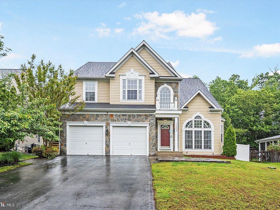 Well Kept and Move In Ready Best Describes this Impressive 4 bed / 3.5 Bath Stone Front Colonial in the Subdivision of Overlook At Timbers. The homes Grand Entrance offers a 2 Story Foyer and Vaulted Ceilings accented by the Hardwood Floors as you enter the home. The home offers fine dining if chosen or the convenience of the eat in kitchen. The kitchen provides all one is looking for - 42" solid wood front cabinets, granite counters, S.S. Appliances, Large Island, Recessed lighting, gas stove and is wide open to the family room with wood burning fireplace. The main level also offers a half bath for the convenience of a bathroom on every level. The main level also offers a first floor laundry room. The upper level offers the large primary suite with cathedral ceilings, retro fan, dual walk in closets and a primary bath with an open concept to include dual sinks, a large Jacuzzi soaking tub and walk in tiled shower with bench seat and private water closet. The remaining 3 bedrooms are all spacious in size and offer ceiling fans. The Fully Finished Lower Level is already set up for the sports enthusiast to include a wet bar, tv room, gaming area and a full bath + storage. The lower level also offers the convenience of access to the back yard. The back yard is a entertainers delight - large patio, full privacy vinyl fenced yard, playground equipment, storage shed and plenty of space for all to enjoy. The garage is fully finished and provides insulated doors, garage door openers and cabinetry for storage. The home offers a new Lennox HVAC Zoned System in 2023. The home is awaiting your arrival to come and make your own memories for many years to come!!!
