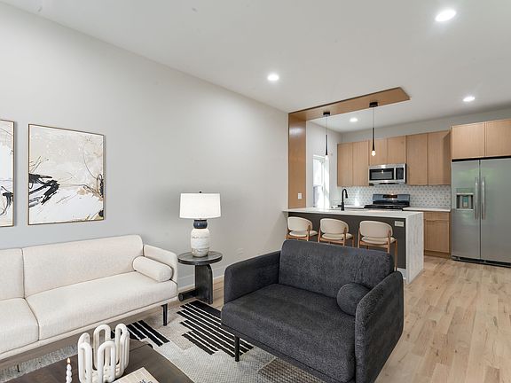 Discover modern comfort and style in this beautifully designed 3-bedroom, 2-bathroom apartment, located in the heart of Woodlawn. This new construction residence features an open-concept floor plan with gleaming hardwood floors, abundant natural light, and a thoughtfully curated contemporary design. The chef-inspired kitchen boasts 42-inch shaker cabinets, stainless steel appliances, quartz countertops, and a waterfall-edge peninsula island - perfect for entertaining or everyday dining. The spa-like bathrooms feature sleek vanities and glass-enclosed showers, offering a luxurious retreat at home. The apartment also includes one parking spot in a secured garage, providing both convenience and security. Located just minutes from the University of Chicago Law School, lakefront trails, and major transit routes, this apartment combines modern living with unbeatable accessibility in one of Chicago's fastest-growing neighborhoods.